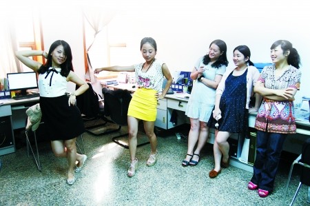 8月6日,網(wǎng)友“真真”在網(wǎng)上發(fā)帖稱(chēng),近來(lái)許多白領(lǐng)流行起在午休時(shí)間跳舞,白領(lǐng)們終于不再靠跑樓梯鍛煉了。該帖一出,引起不少網(wǎng)友的共鳴,而網(wǎng)友“布拉格”則表示,他的辦公室里就有女同事在跳爵士舞。在武漢光谷新世界大樓,正是午休時(shí)間,23歲的小施剛好就在辦公室里跳起了爵士舞。小施說(shuō),白領(lǐng)的工作大多都需要久坐,午休時(shí)間跳跳舞能促進(jìn)血液循環(huán),減少全身酸痛?!半m然穿著(zhù)高跟鞋和工作服跳爵士會(huì )讓動(dòng)作施展不開(kāi),但和同事一起跳很有氛圍,大家一邊跳一邊交流,打破了辦公室沉悶的氣氛,一到下午上班,精神特別好,還有點(diǎn)意猶未盡的感覺(jué)?!毙∈┱f(shuō),不僅僅是她,現在很多女白領(lǐng)都喜歡在辦公室里練練舞,旅游公司工作的25歲白領(lǐng)程程就表示,碧昂斯的《Sigle Lady》就是她和同事每天午休時(shí)間的“黃金練舞曲”。即使上午忙得昏天黑地,但一聽(tīng)到音樂(lè ),同事們就像活過(guò)來(lái)了一樣,跳幾遍,出點(diǎn)汗,整個(gè)人都輕松了。